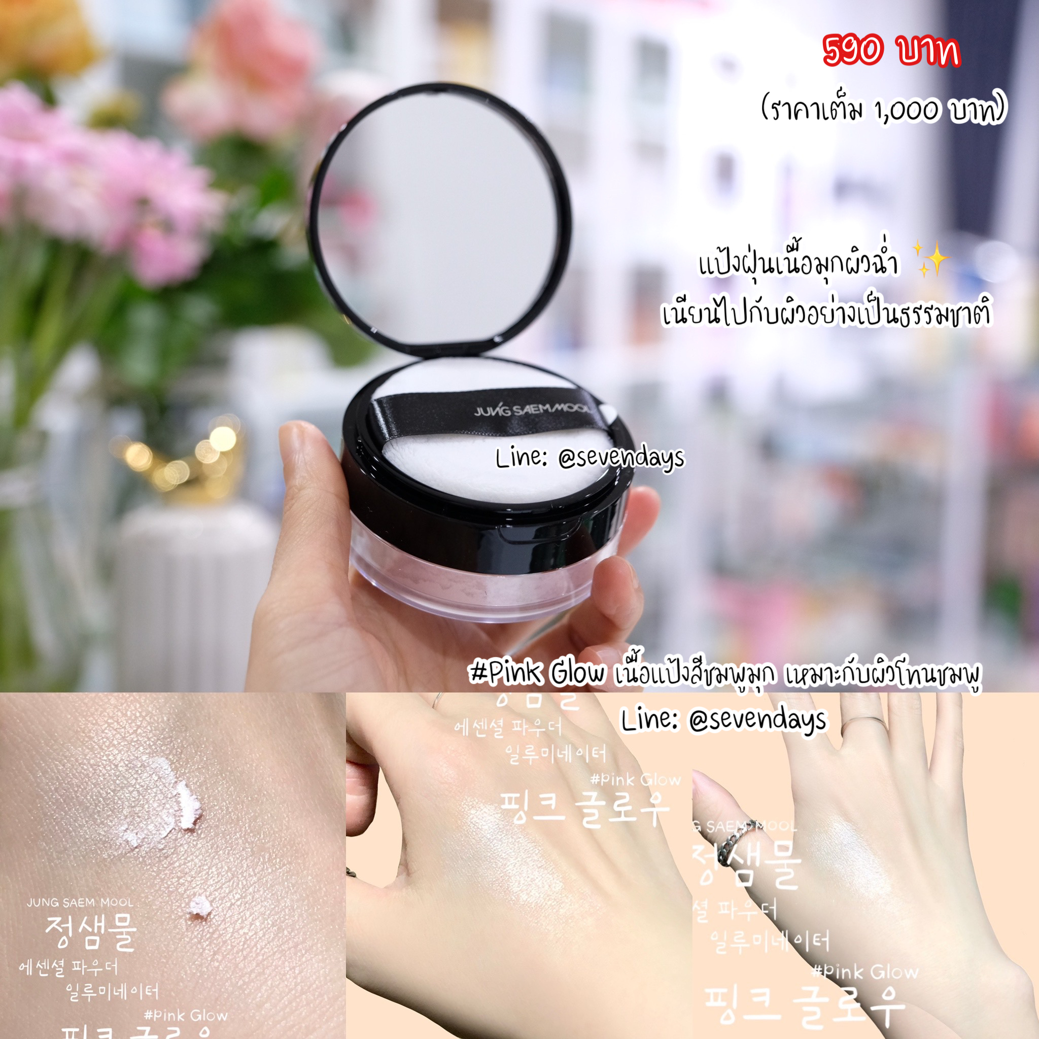 สี Pink Glow เนื้อแป้งสีชมพูมุก เหมาะกับผิวโทนชมพู